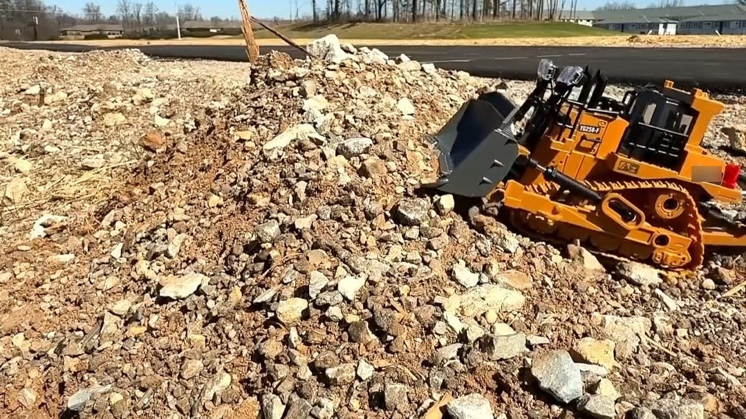 ของเล่นประกอบรถขุดและยางรถตำรวจลองการ์ตูนแอนิเมชั่น