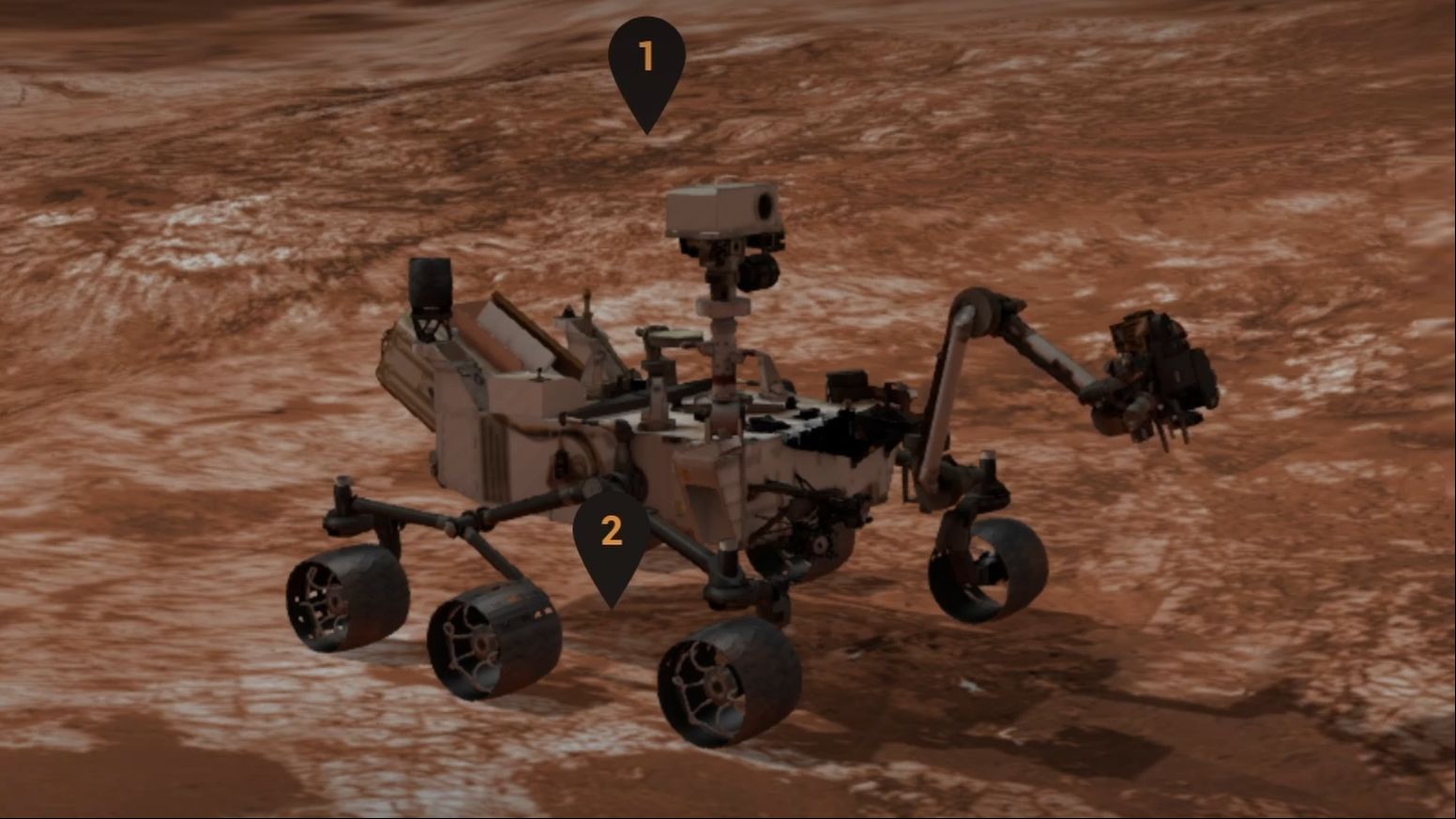 Mars rover Curiosity takes pictures of the surface of Mars and takes soil samples