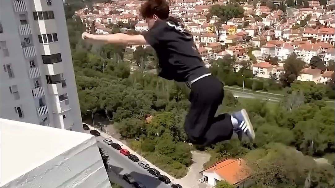 [กีฬา]ผู้เล่นปาร์กัวร์แสดงวิธีการเข้าเรียนให้ทันเวลา