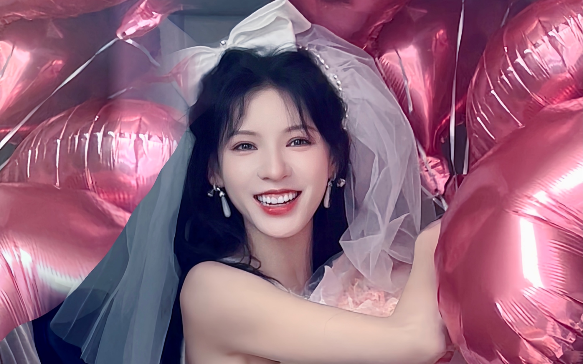 520 หวังเหอตี้น่ารักมาก เธอสวมสายเอี๊ยมยีนส์และเสื้อยืดสีเทาและชมพู เป็นชุดคู่ที่สมบูรณ์แบบ ❤️ฉันมีค