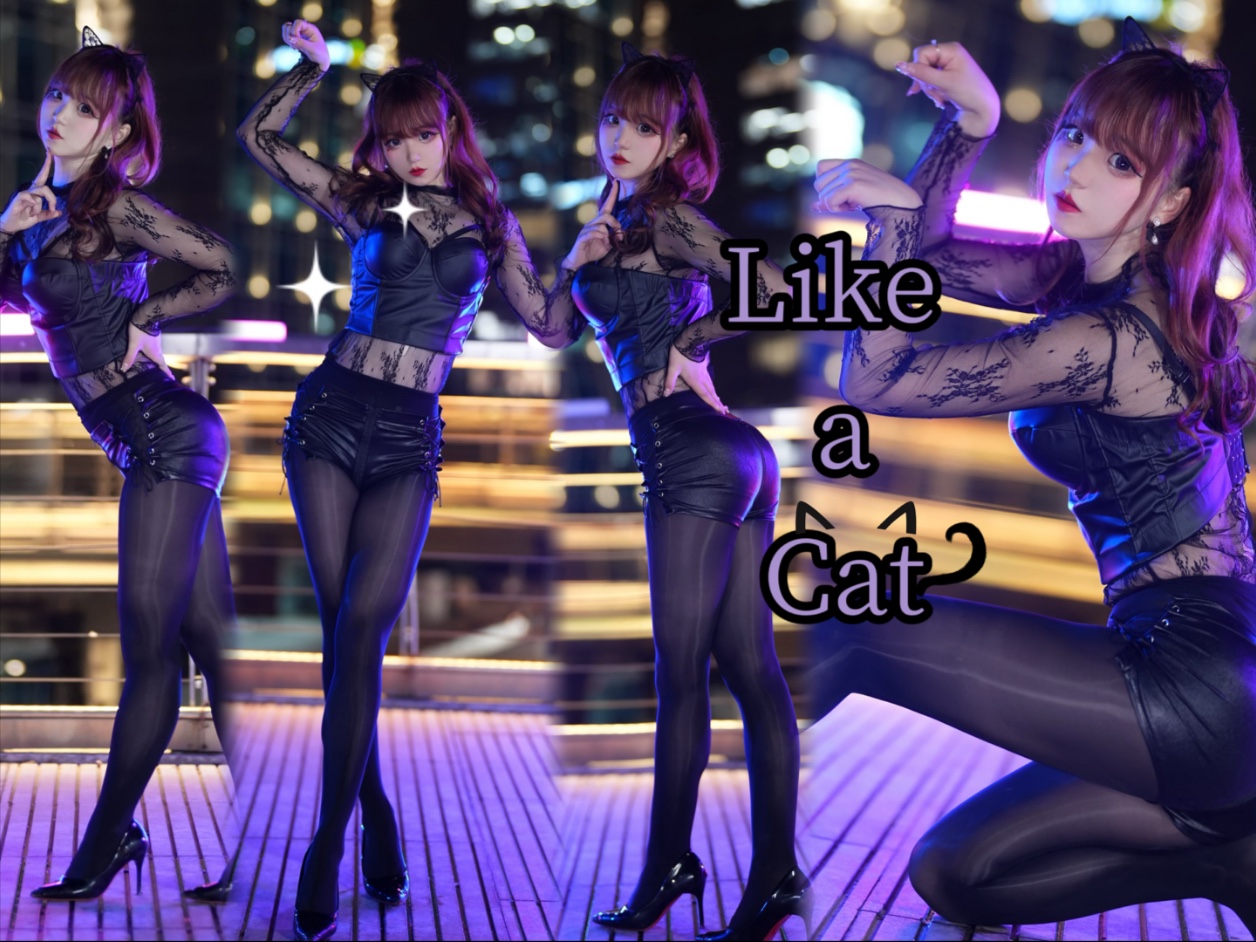 ลูกแมวที่มีเสน่ห์กางเกงหนังและรองเท้าส้นสูงร้อนแรงรุ่นหูแมวเหมือนแมวมุมมองความละเอียดสูงที่ใกล้สุด