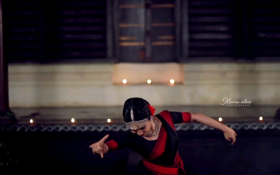 (ด้านหน้าเบลอสูง) นักเต้นระบำ Bharat ของ Zhou Jie ระบำ Alarippu