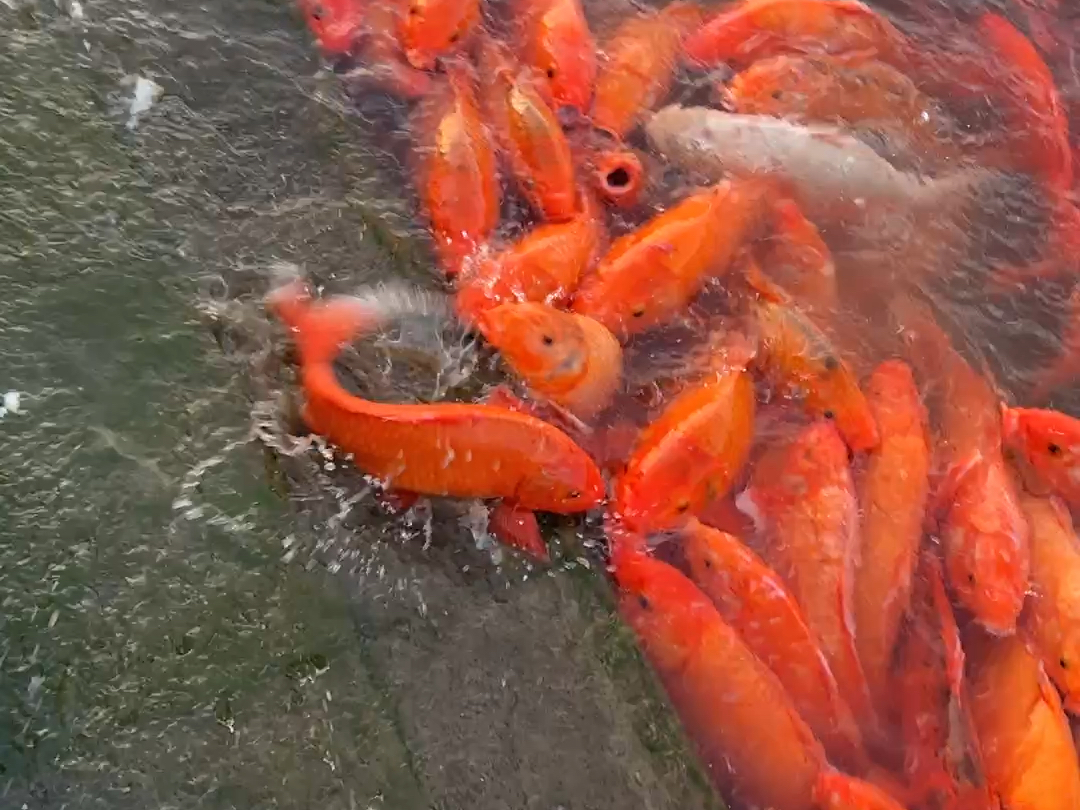 พี่ชายให้อาหารปลาเหมือนสัตว์เลี้ยง ลูบหัวตัวเอง ไม่ต้องรีบ เอาไปทีละตัว