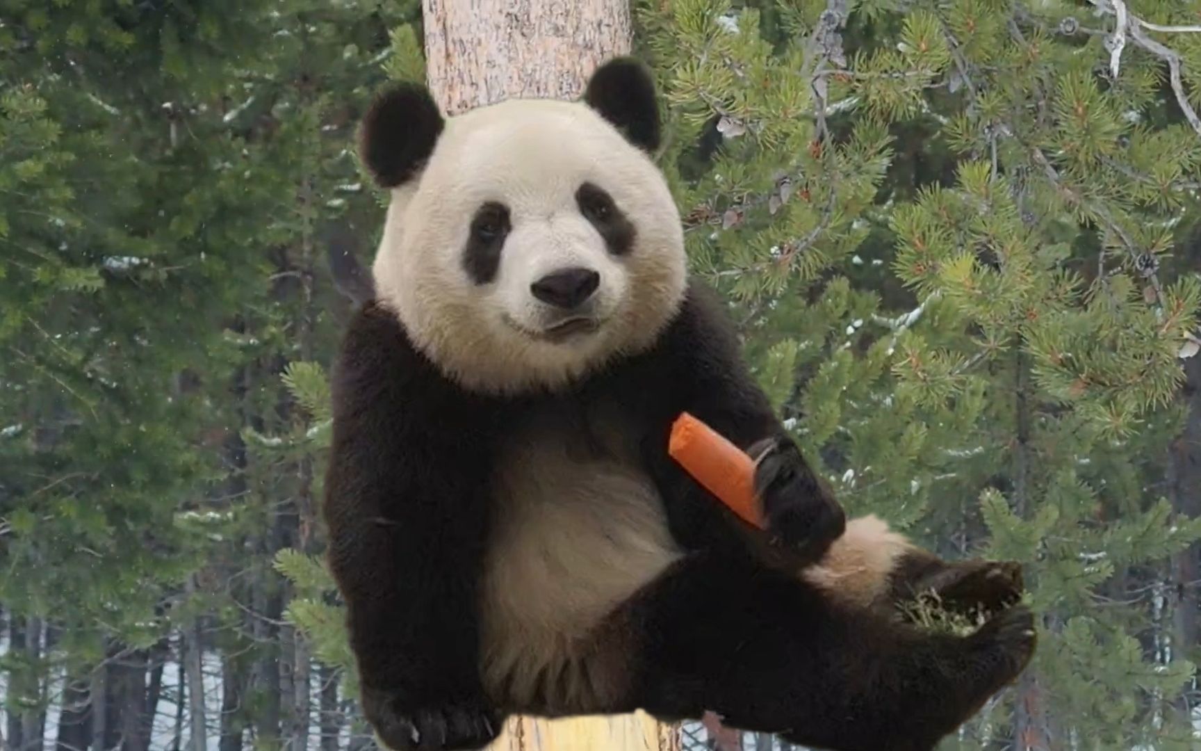 หมีแพนด้าตัวน้อยพยายามกินต้นไผ่ แต่กัดยังไงก็กัดไม่ขาด