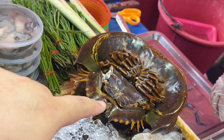 อาหารไทย: บุฟเฟ่ต์ซีฟู้ดริมถนน อาหารทะเล อาหารทะเลสำหรับคนในท้องถิ่นฟรี วิธีเปิดที่ถูกต้อง