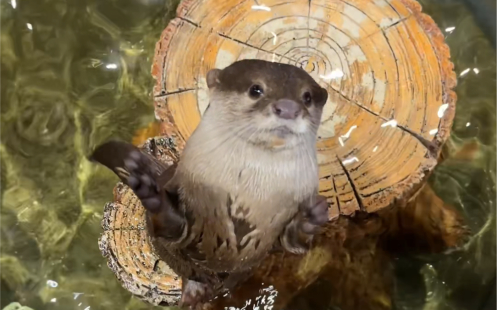 [สัตว์]ตัวนากน้อยนอนในอ้อมกอดแม่ลอยน้ำ