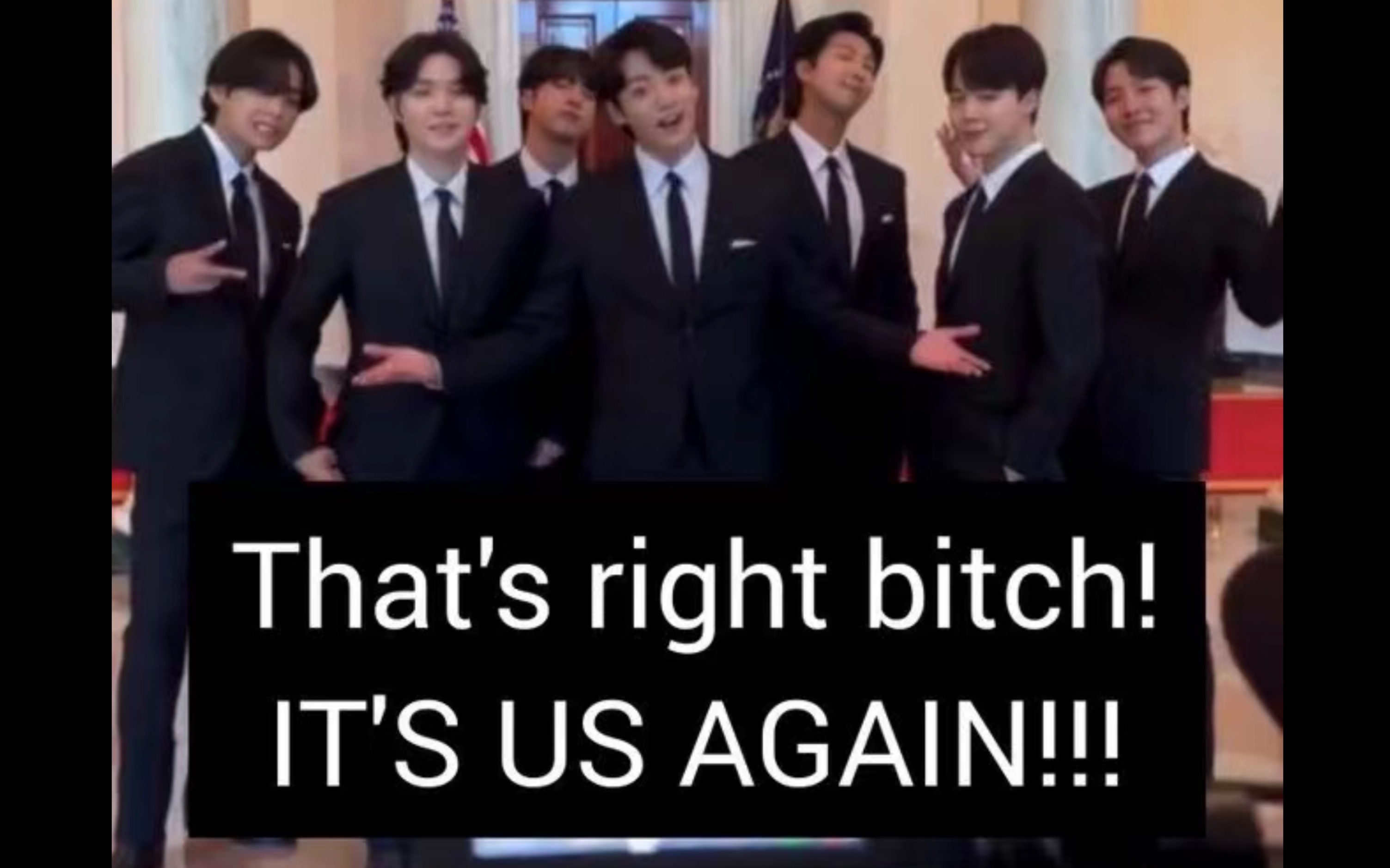ฉากนี้ฮามาก วงอื่น ๆ แต่งสูทผูกไทกันหมด แต่ BTS มัดผมบันหลากสีสัน 555+