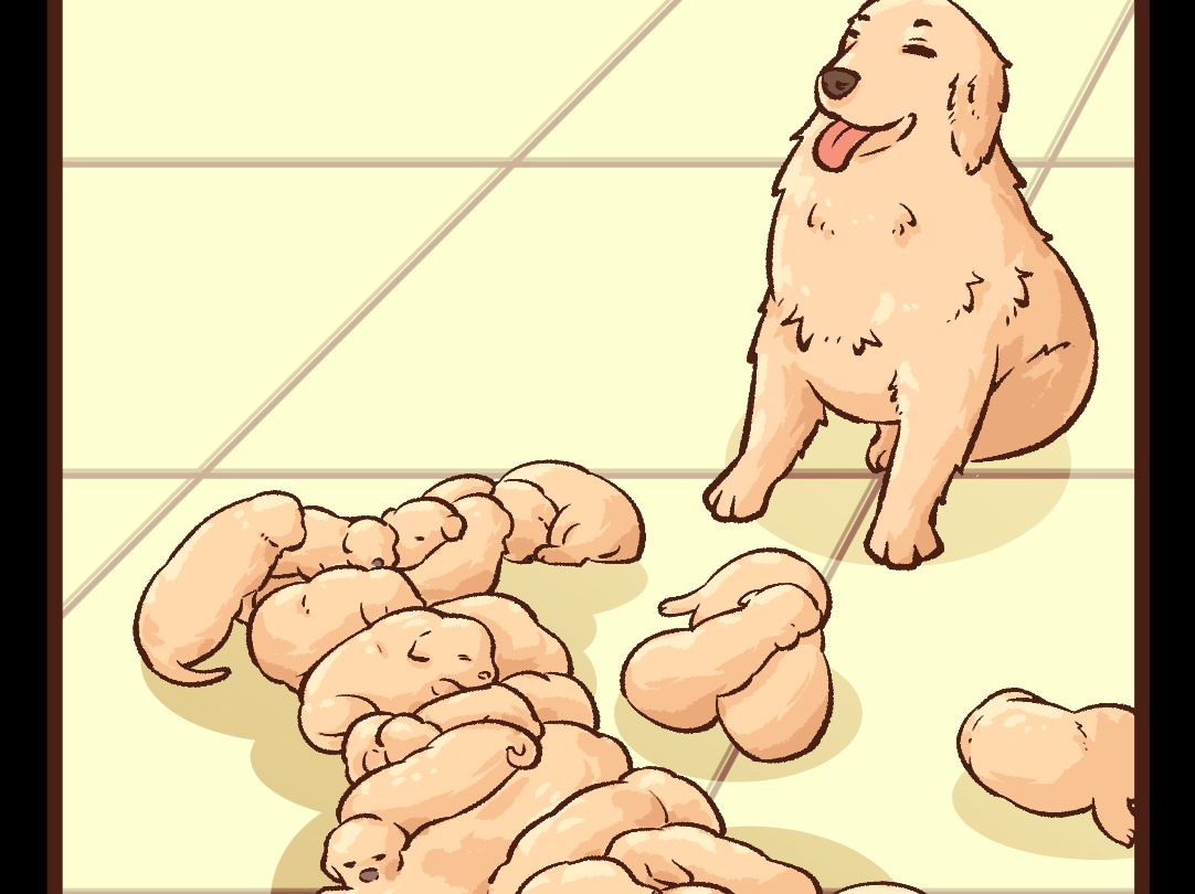 เหลือเชื่อ! บรรดาลูกไก่กระโดดขึ้นไปบนเตียงของโกลเด้นรีทรีฟเวอร์ โดยหวังว่าโกลเด้นรีทรีฟเวอร์จะอุ้มพว
