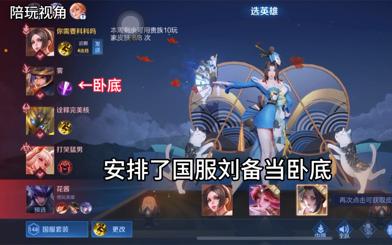 กดเลือกผู้เล่นสนับสนุน 4 คน แต่มีเพียงผู้เล่นสนับสนุนที่เพิ่งได้หัวล่าสุดเท่านั้นที่เปิดไมค์ได้ จะเก