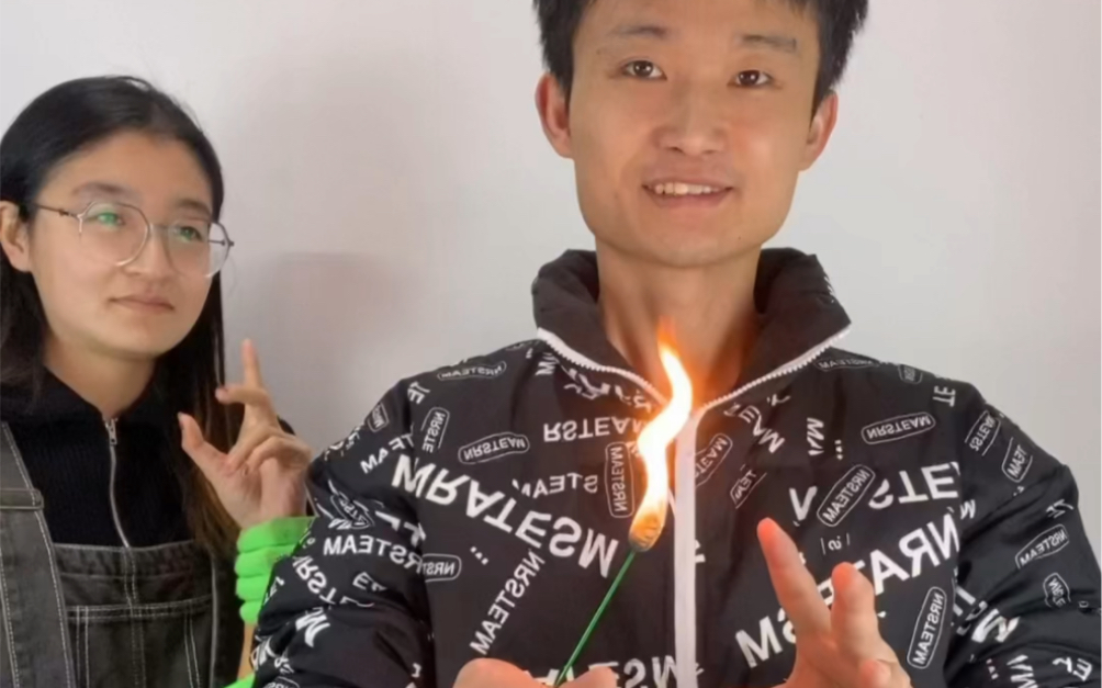 ชายหนุ่มปลอมตัวเป็นหญิงชราแล้วทำท่าตีลังกาหลัง ทำให้ชายชราและหญิงชราที่อยู่ข้างๆ ตกใจกลัว