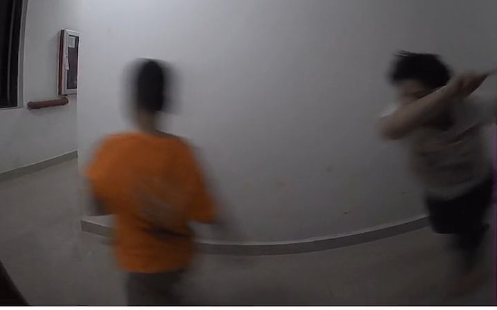 ชายชรานำถั่วแดงออกมาโปรยใส่เด็กหญิง เด็กหญิงเจ็บปวดจนทนไม่ไหว ร้องขอให้หยุดอย่างต่อเนเนื่อง