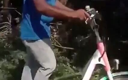 ชายคนหนึ่งขี่จักรยานไม่มองถนนจึงเกิดอุบัติเหตุรถจักรยาน 2 คันชนกัน