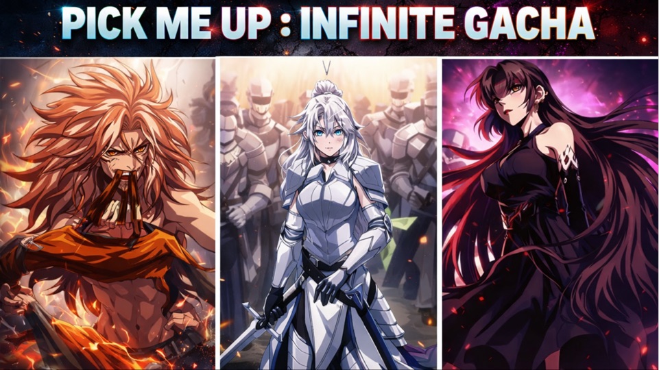 ชื่อเรื่อง Pick Me Up, Infinite Gacha เรื่องย่อ เรื่องราวเริ่มต้นจาก หนุ่มพนักงานบริษัทธรรมดา ที่เผลอหลับไปหลังเลิกงาน แต่เมื่อเขาตื่นขึ้นมากลับพบว่าตัวเองมาอยู่ในโลกของเกมมือถือกาชาที่เคยเล่นมาก่อน ซึ่งเกมนี้เป็นแนว Tower Dungeon ที่ผู้เล่นจะต้องสุ่มตัวละคร (กาชา) เพื่อนำทีมขึ้นไปพิชิตหอคอยที่มีถึง 100 ชั้น