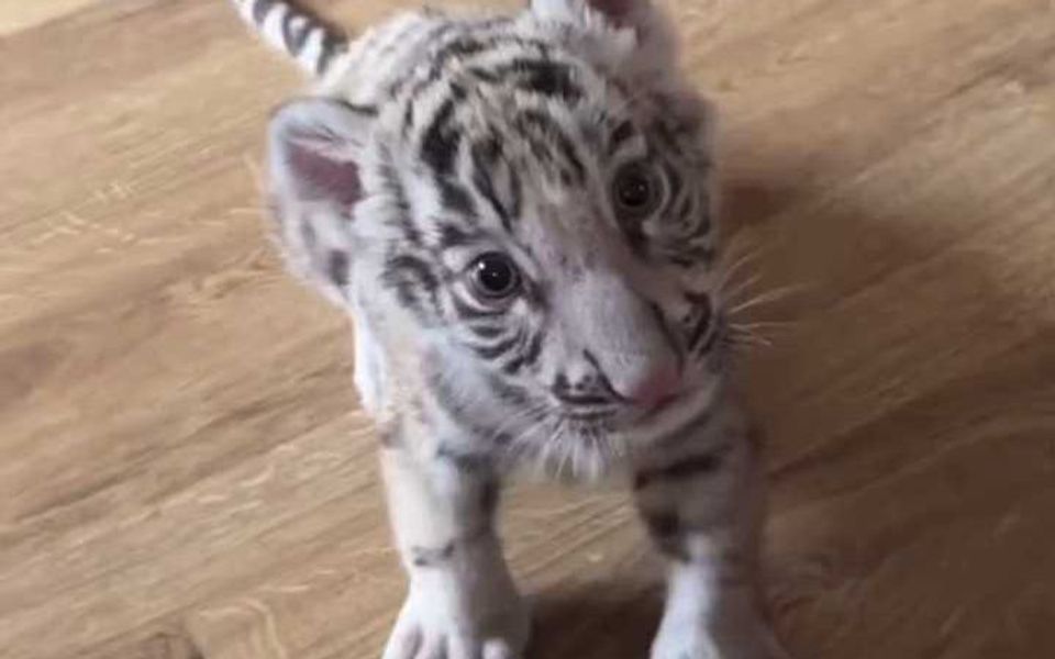 เสือขาวตัวน้อยใช้ทรายแมวเป็นครั้งแรก