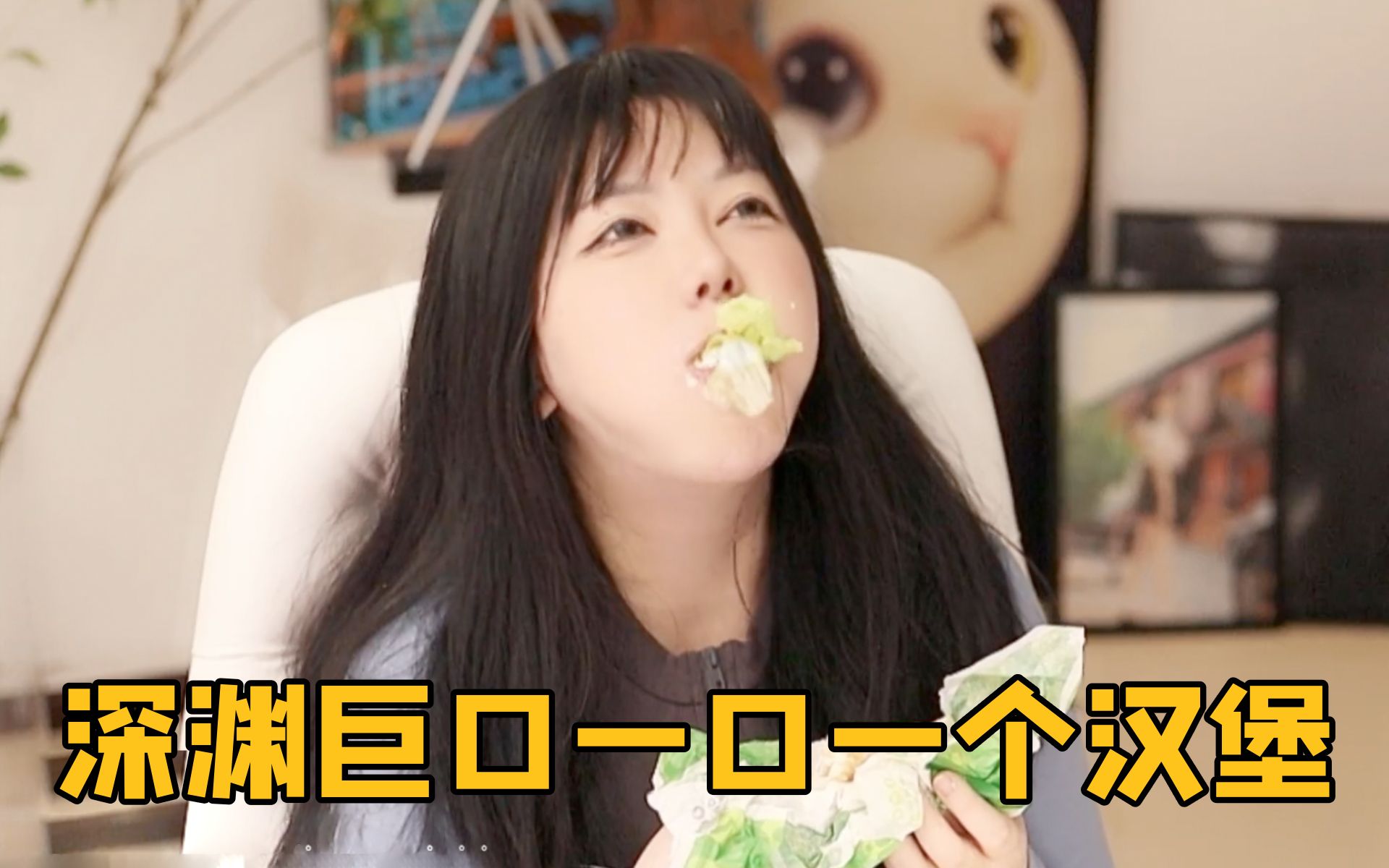 [คำบรรยายภาษาจีนของ Boki] สาวน้อยกินเบอร์เกอร์ชิ้นใหญ่ไปห้าชิ้นด้วยตัวเธอเอง ซึ่งทำให้ผู้คนเริ่มอยาก