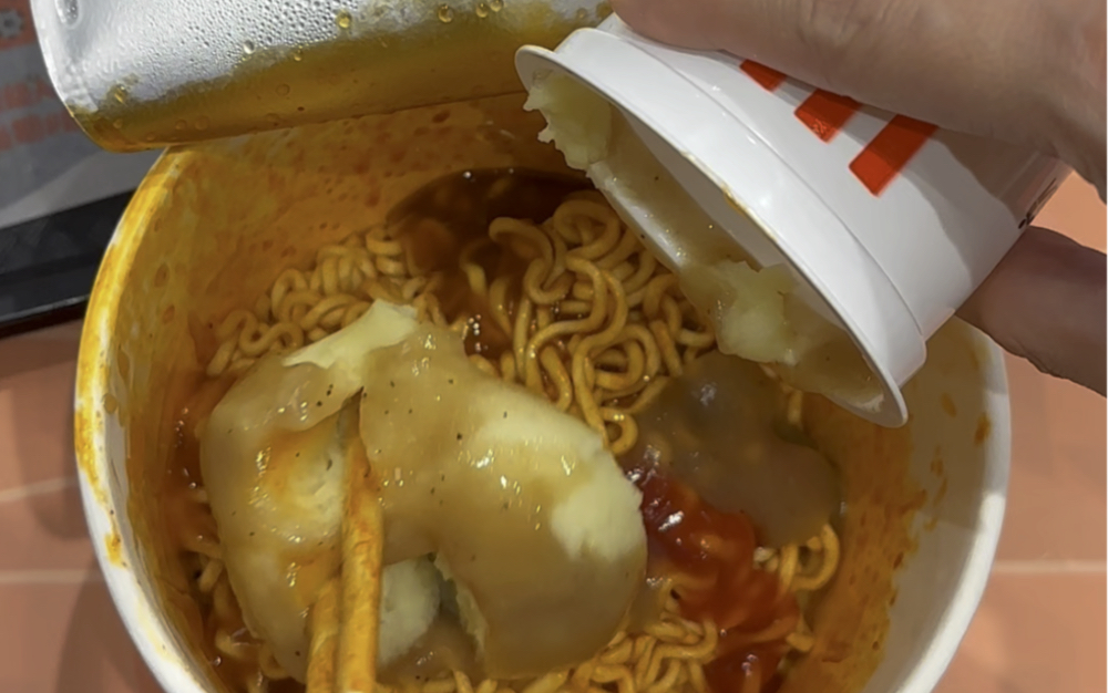 นานแค่ไหนแล้วที่พวกเธอไม่ได้ดูฉันกินบะหมี่ไก่งวงกับไก่ทอด นี่แหละ รสชาติอันคุ้นเคยนั่นเอง!