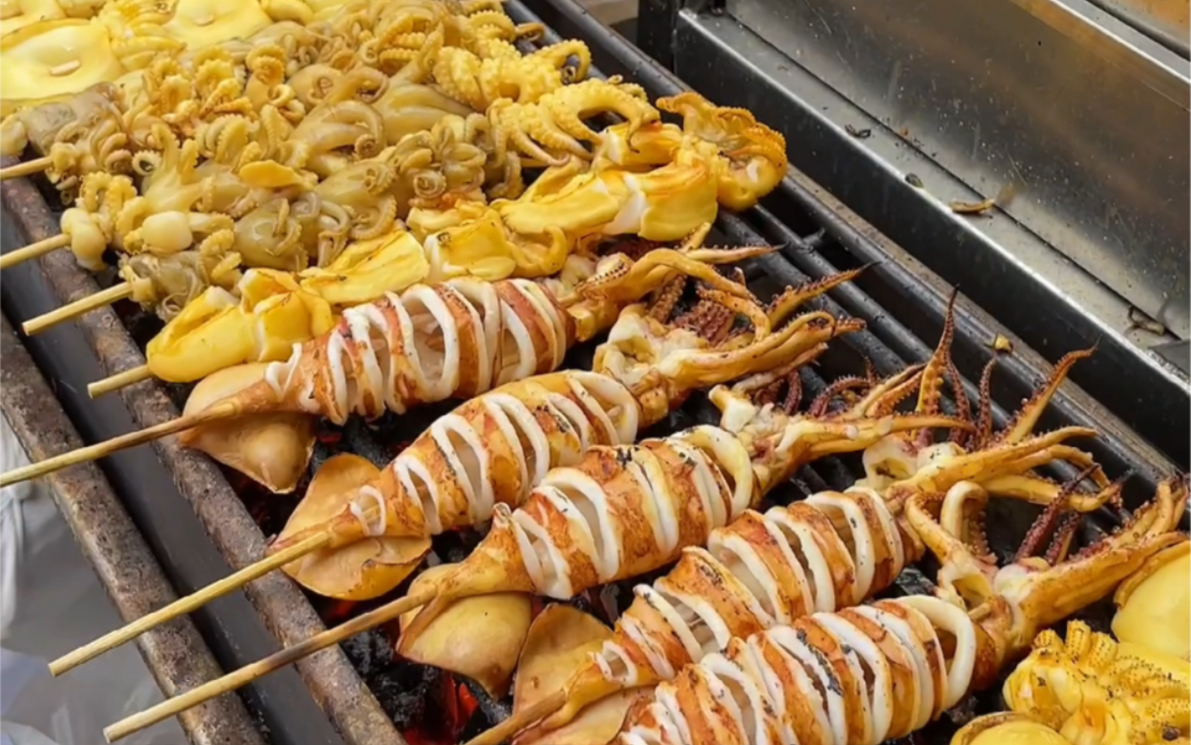 อาหารไทย: ปลาหมึกสดริมถนน ซาซิมิเนื้อนุ่มหวานอร่อย เคี้ยวไปเรื่อยๆ ยิ่งหวานอร่อย
