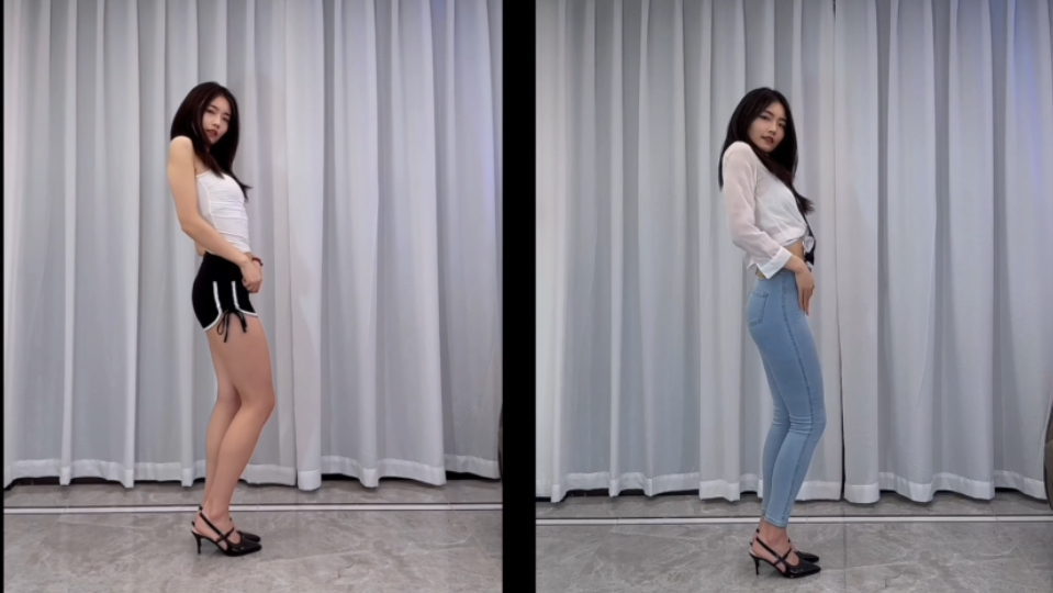 กางเกงยีนส์ + กางเกงขาสั้น ตัดต่อสองชุดรวมกัน EXID-DDD สั่นๆๆ ดูจนจบแล้วก็ไปให้พ้น