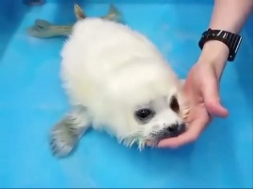 ลูกแมวน้ำวัย 21 วัน สำลักน้ำครั้งแรก