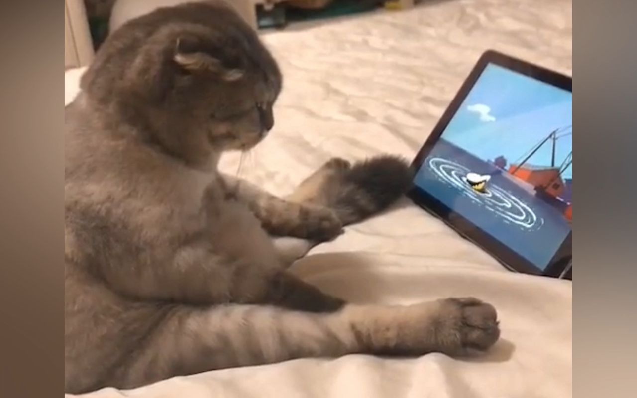 แมวน้อยถูกไก่เหยียบแบน โดยทำอะไรไม่ถูก