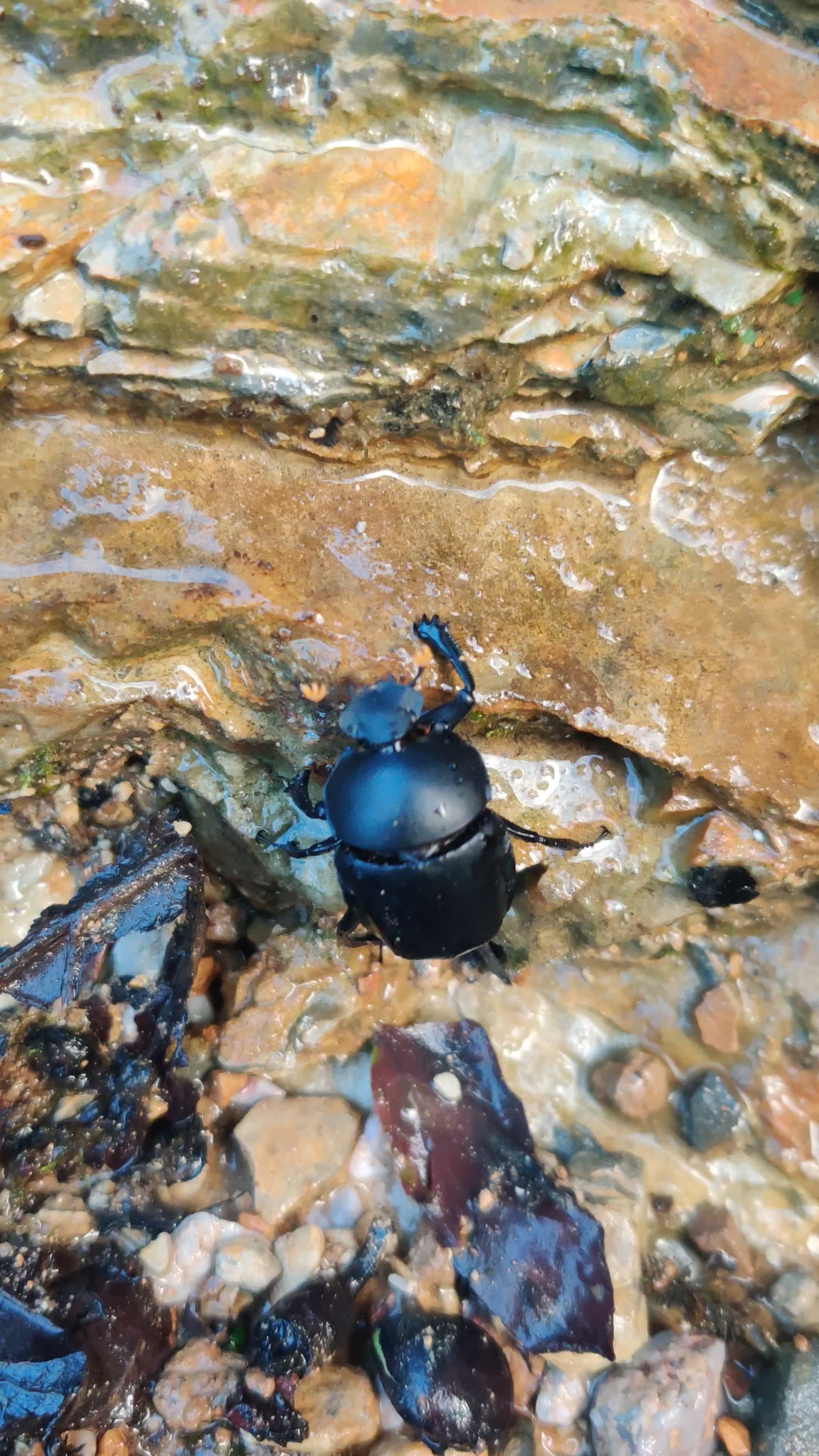 กลุ่มด้วงน้ำรุมแย่งหอยลาย