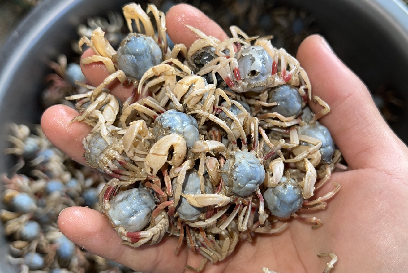 วันนี้ไปเก็บปูทรายที่ชายทะเลแล้วเอามาตั้งแผงขายตามถนน