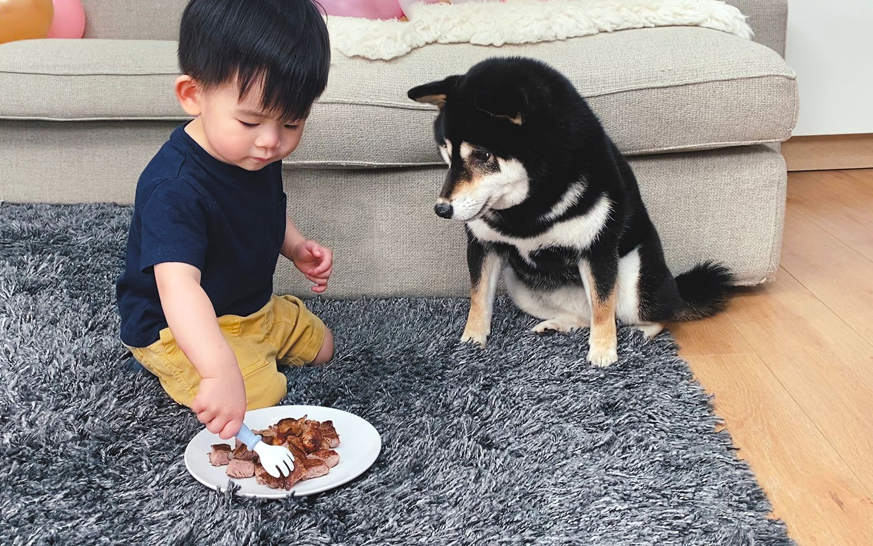 เด็กเล็กเล่นกับหมา