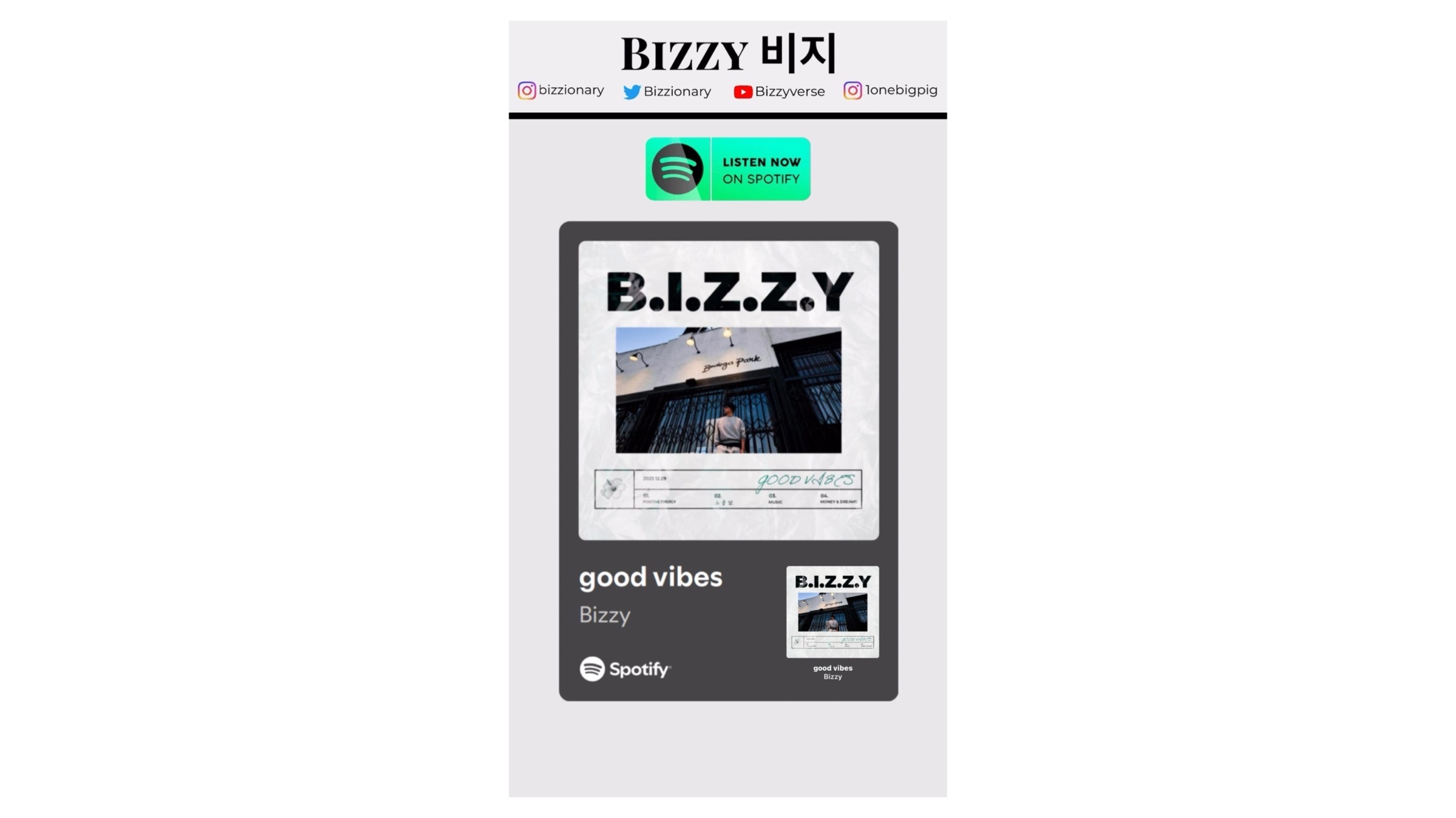 #bizzy #비지 #bizzionary #비지래퍼 #비지앨범 #bizzyverse #mfbty #dok2 #goodvibes #느좋랩 #spotify #streaming #래퍼 #rapper #hiphop #khiphop #koreanrapper #hiphopmusic #koreanmusic