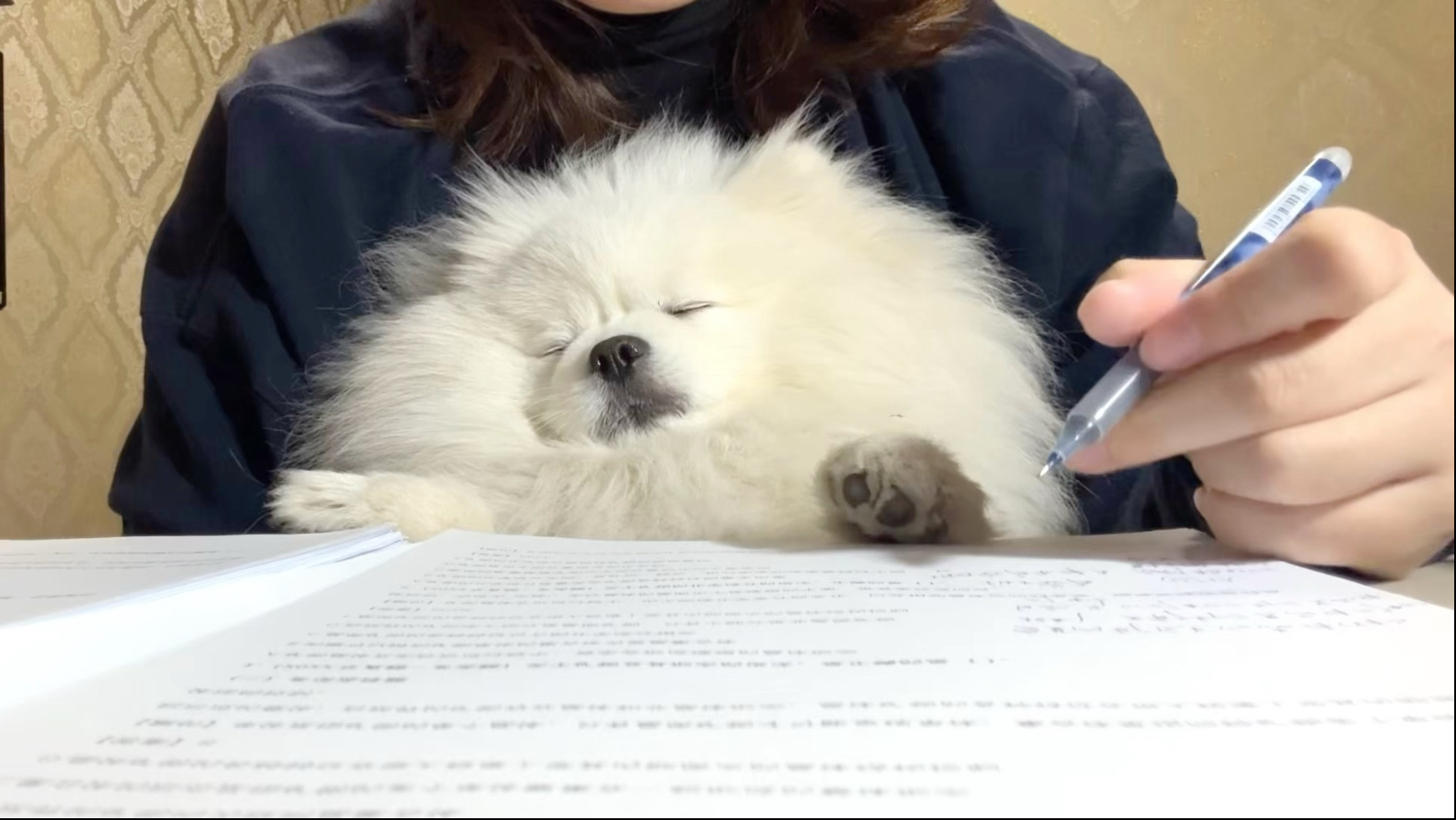 สุนัขปอมเมอเรเนียนกินเค้กข้าวไส้กรอกและเค้กข้าวหมูออนไลน์ เคี้ยวอร่อย!