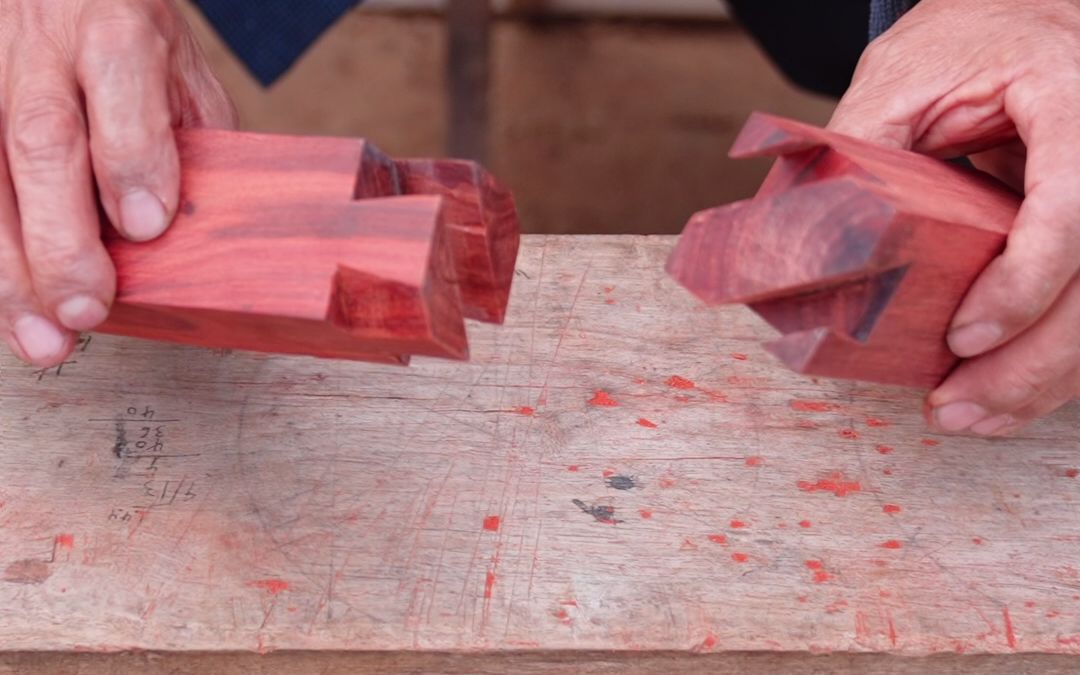 สาธิตการใช้สลักบาร์บะเฉิงในงานไม้แบบจีนโบราณบนเก้าอี้