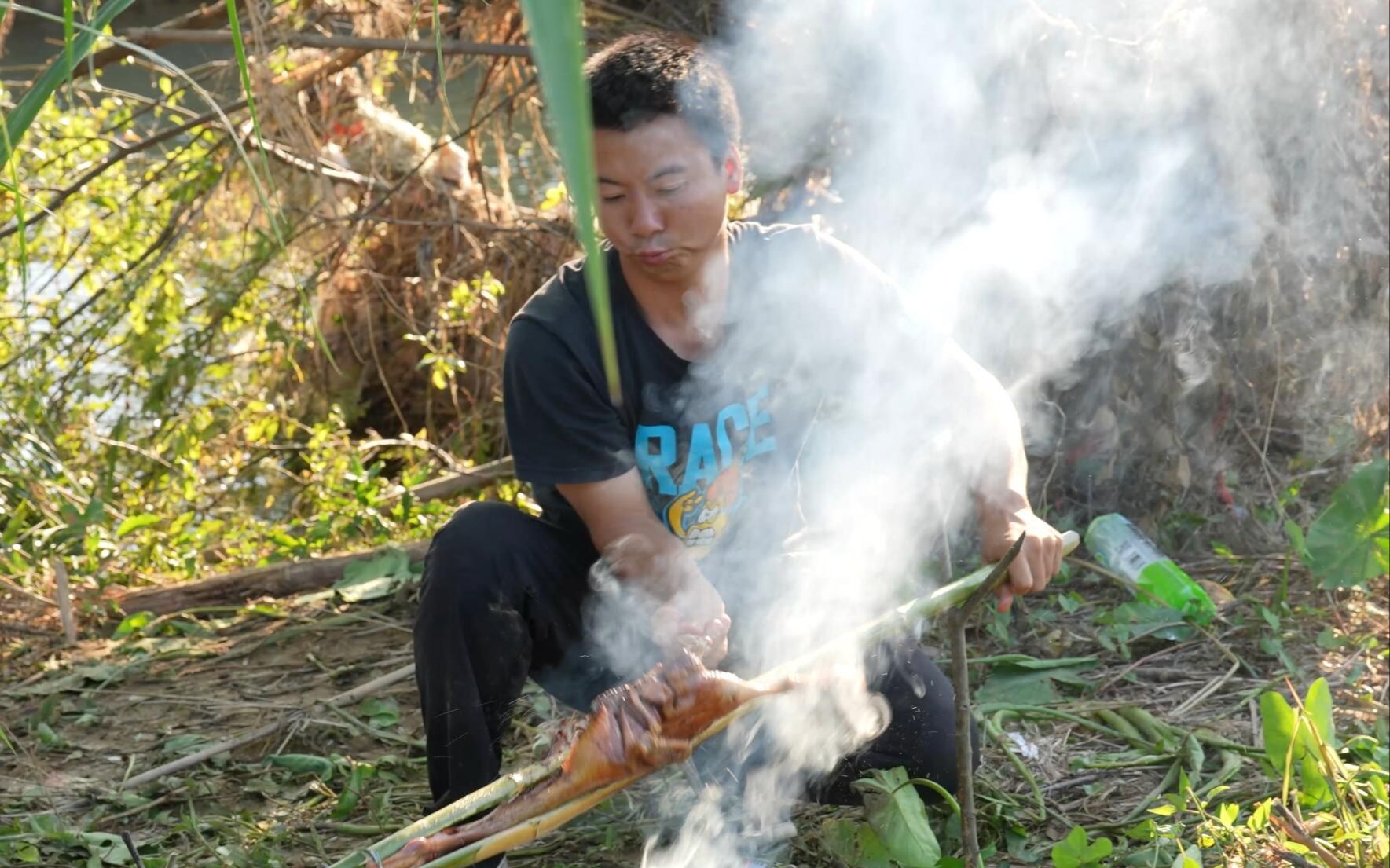 พี่น้องฮวาหนง: จับปลาไหลเหลืองมาได้หน่อย แล้วเอาไปย่างริมลำธาร ยิ่งย่างยิ่งหอม อร่อยสุดๆ เลย!