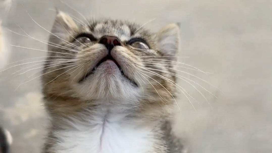 แม่แมวเจออาหารแล้วมาหาลูกแมว แต่ลูกแมวยังกินไม่ได้