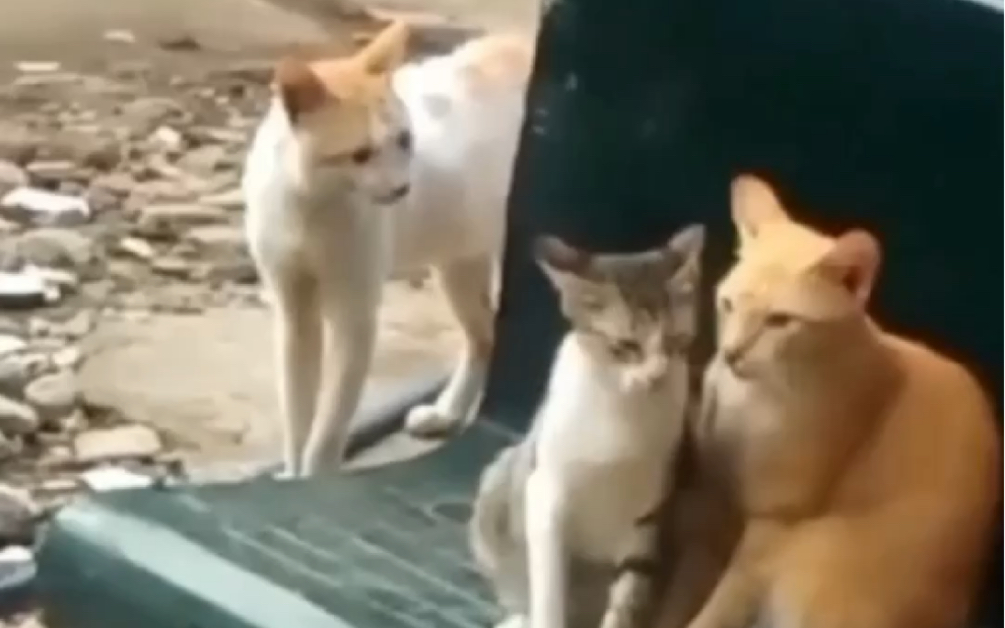 แมวแต่ละตัวมาที่ลู่วิ่งด้วยสีหน้าสับสน