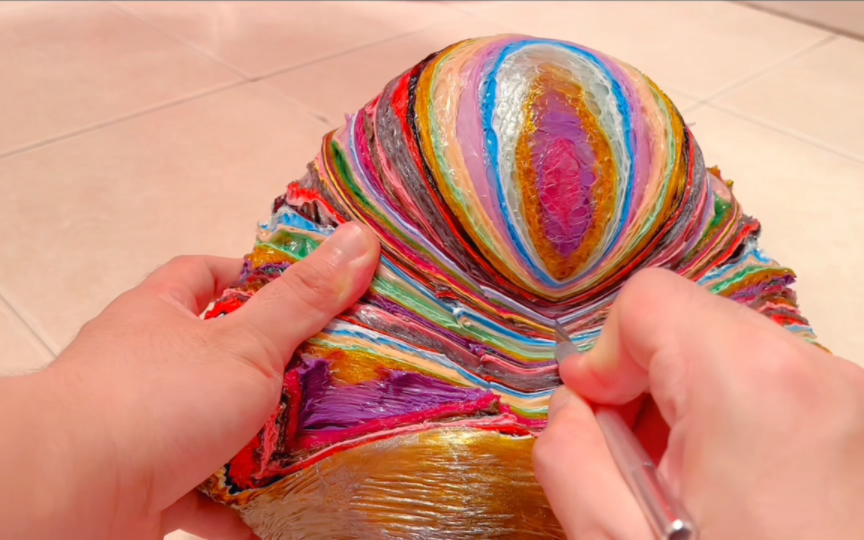 ลูกบอลเทป 100 ซม. ที่ใหญ่ที่สุดในประวัติศาสตร์ถือกำเนิดแล้ว! ปานสันหยู หนัก 17 ปอนด์ เมื่อผ่าออกมาจะ