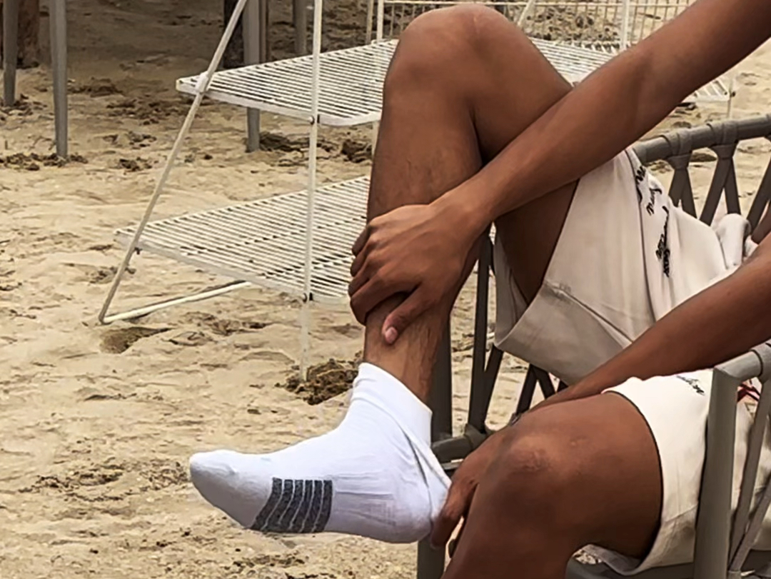หลังวิ่งเสร็จให้เพื่อนทีมช่วยกดนวดขาให้ผ่อนคลายดีจริงๆ