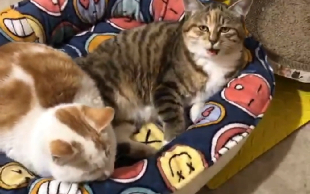 แมวส้มตกใจเมื่อเห็นแมวข้าวแห้ง!