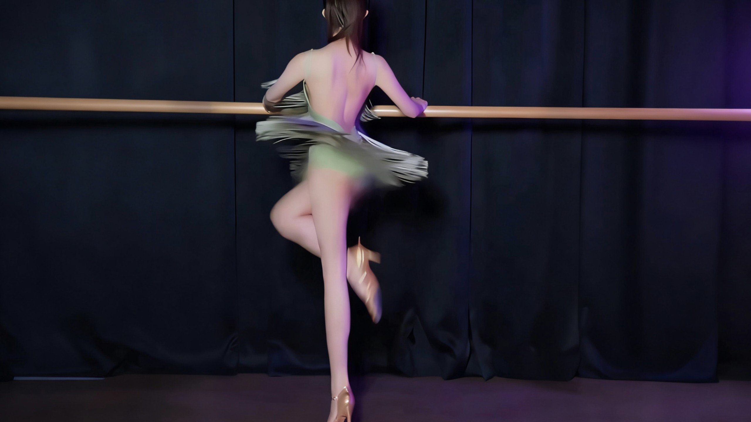 น้องสาวนักเต้นชุดยิมนาสติกสีชมพูถ่ายรูป