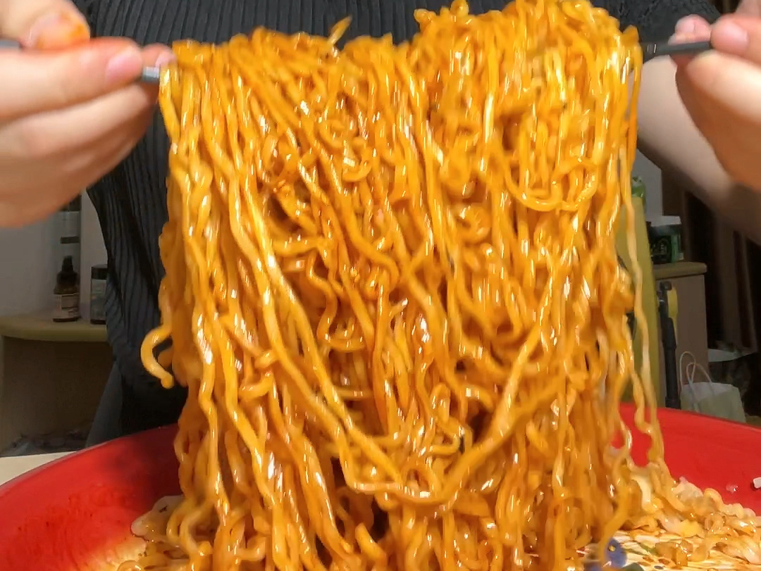 ฉันถึงกับร้องไห้เพราะเผ็ด! หัวแทบระเบิด! บะหมี่พริกผีเผ็ดสองเท่ามันน่ากลัวเกินไปแล้ว!