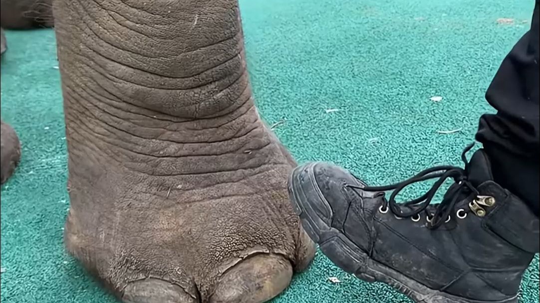 ผู้ดูแลถูกลูกช้างปลุกกลางดึกและต้องกล่อมมันให้หลับ ในที่สุด เขาก็สูญเสียเตียงไป