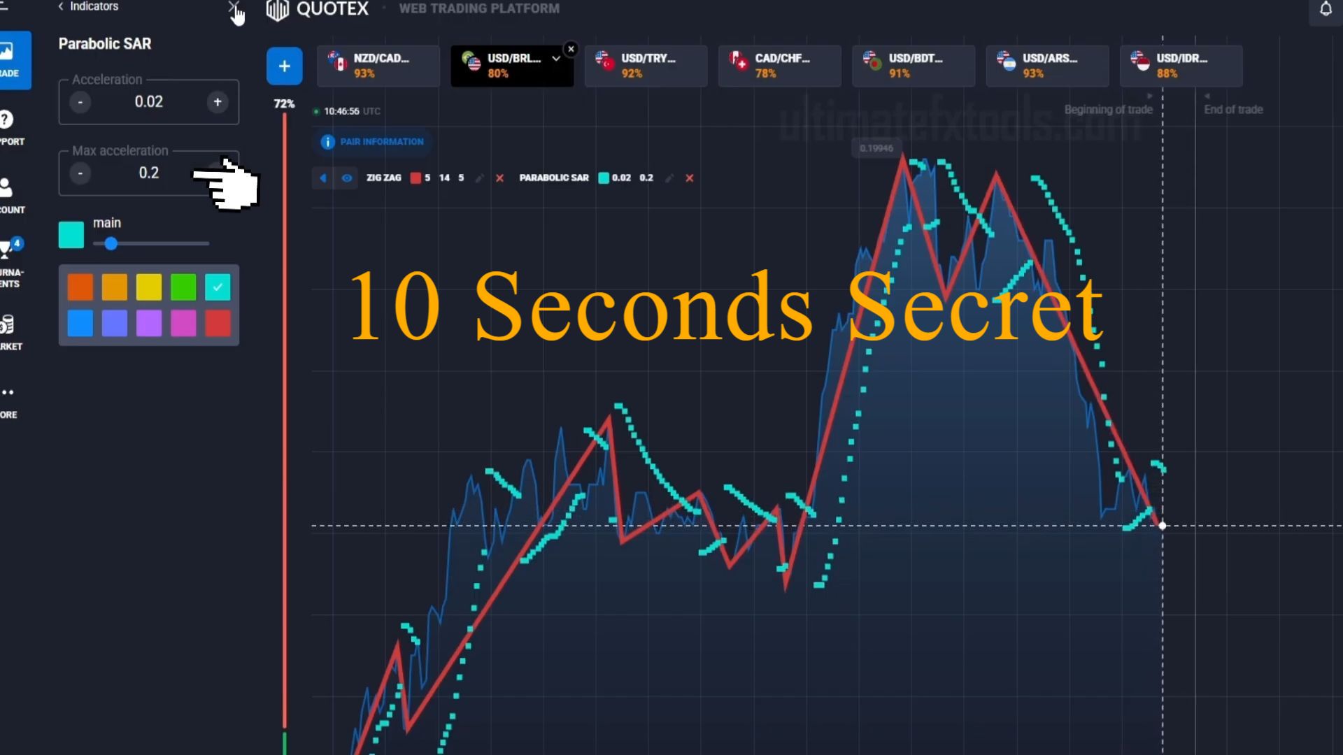 How to trade Quotex with 10 Seconds Duration with the use of Parabolic Sar and Zigzag. See the full video on how to use this strategy.