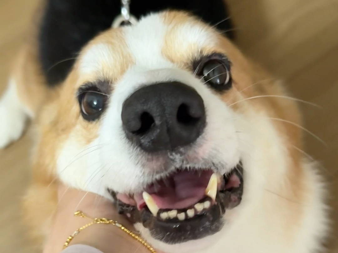 คอร์กี้น้อยพยายามจะหนี สู้มือเดียวยังไม่ได้เลย คอร์กี้:หนูเหนื่อย!