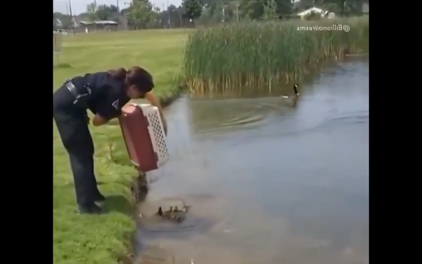 แม่เป็ดพบลูกวิ่งเข้าไปในอ้อมแขนแม่แมว
