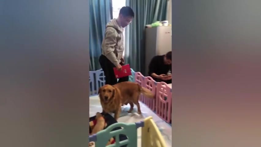 เมื่อเด็กหญิงตัวเล็ก ๆ กลับจากโรงเรียน เธอได้รับการต้อนรับจากสุนัขเลี้ยงสัตว์ของจีน 3 ตัว เป็นเช่นนี