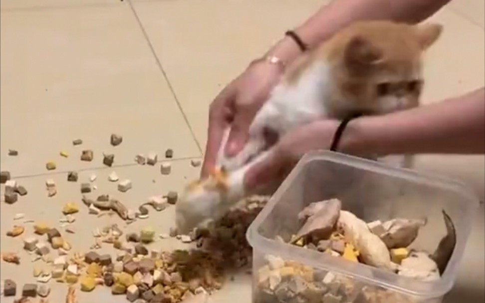 แมวส้มตกใจเมื่อเห็นแมวข้าวแห้ง!