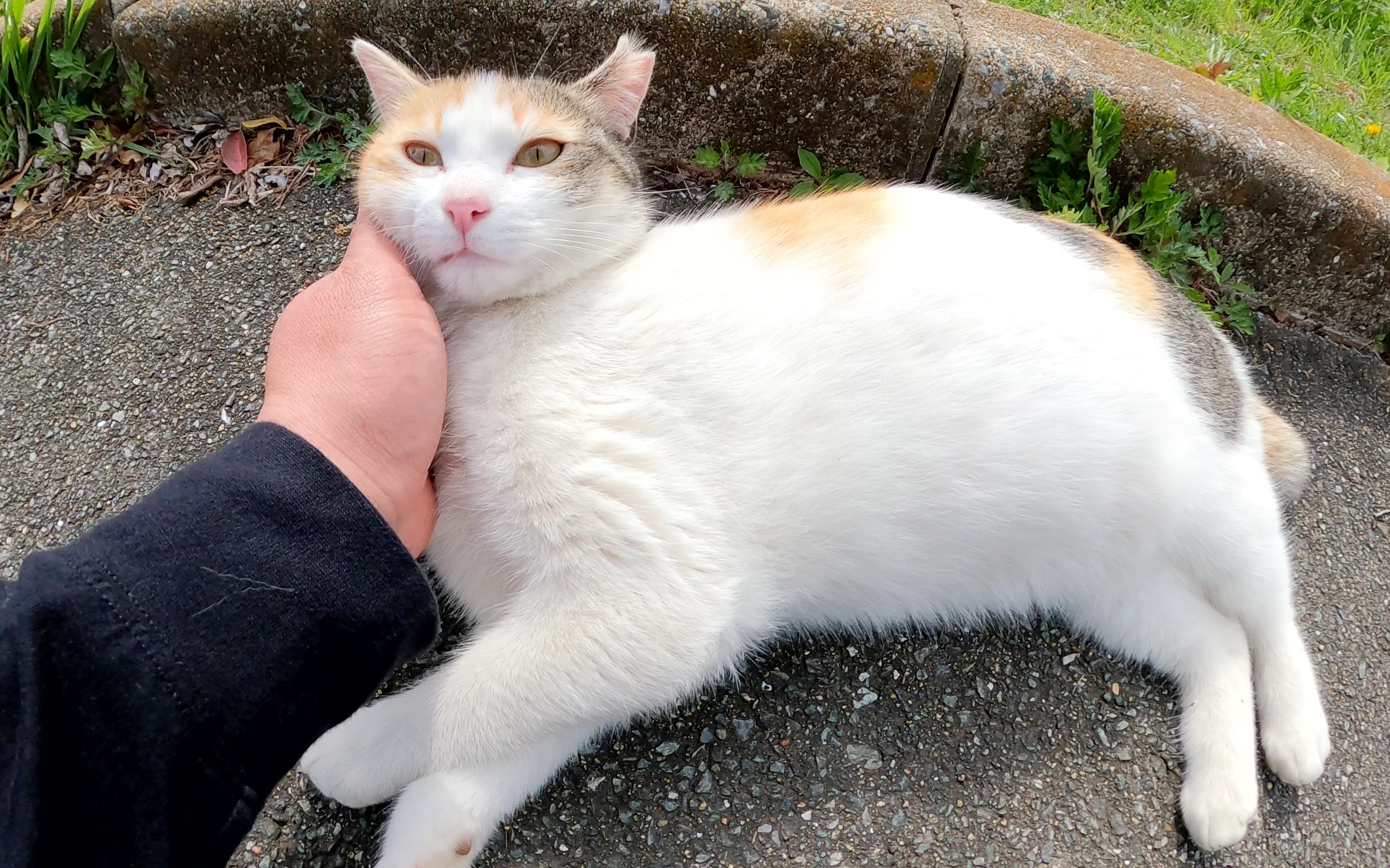 น้องแมวสามสีส่งเสียงคุยกับมนุษย์ในสวนสาธารณะ