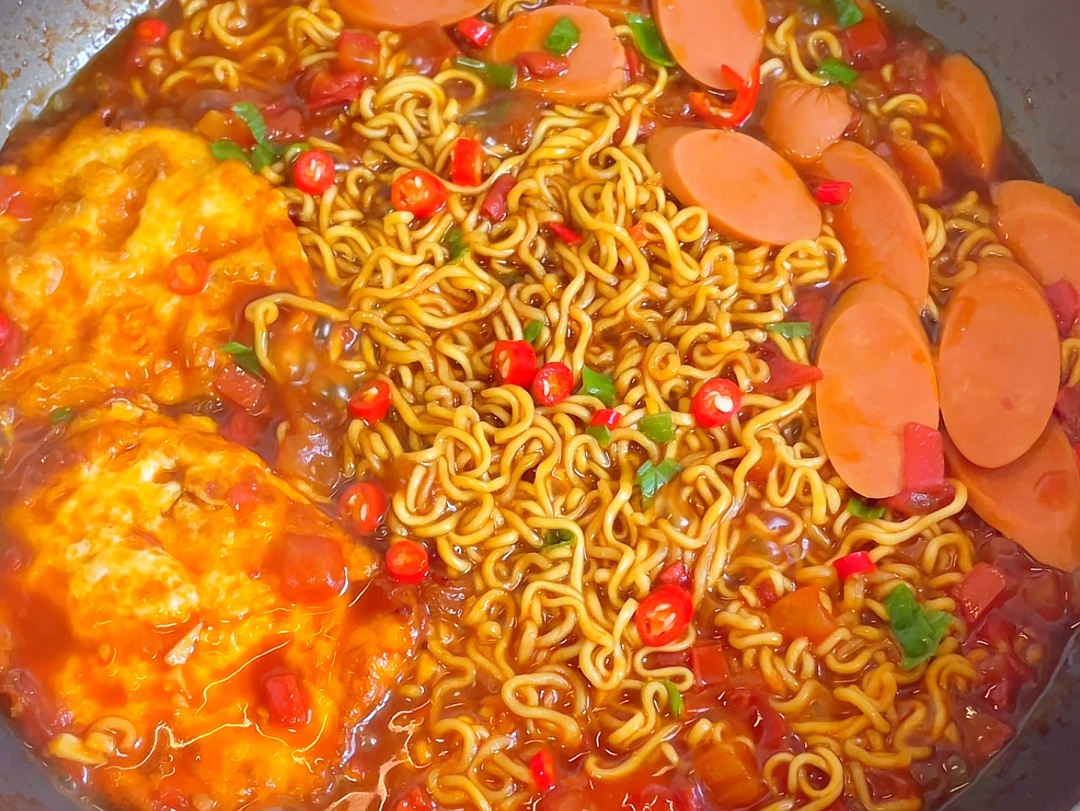 บะหมี่กึ่งสำเร็จรูปเนื้อวัวมะเขือเทศ ไก่อบเตาเผา หมูคากั้มขาหมู