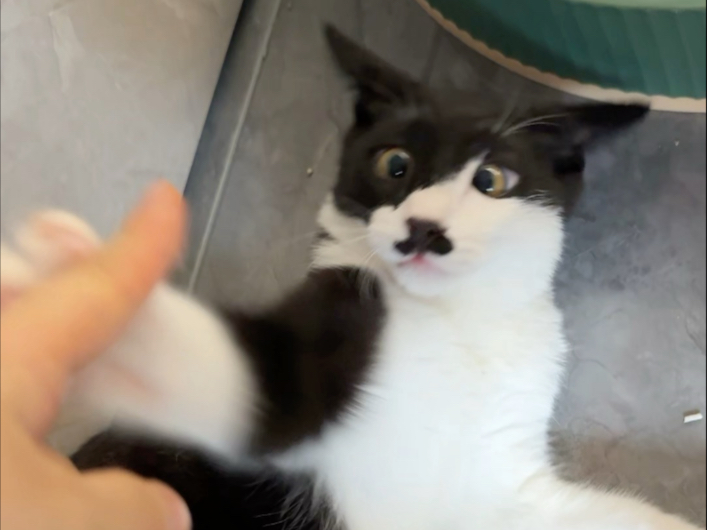 หัวของแมวที่ร้องเหมียวเมื่อถูกสัมผัส