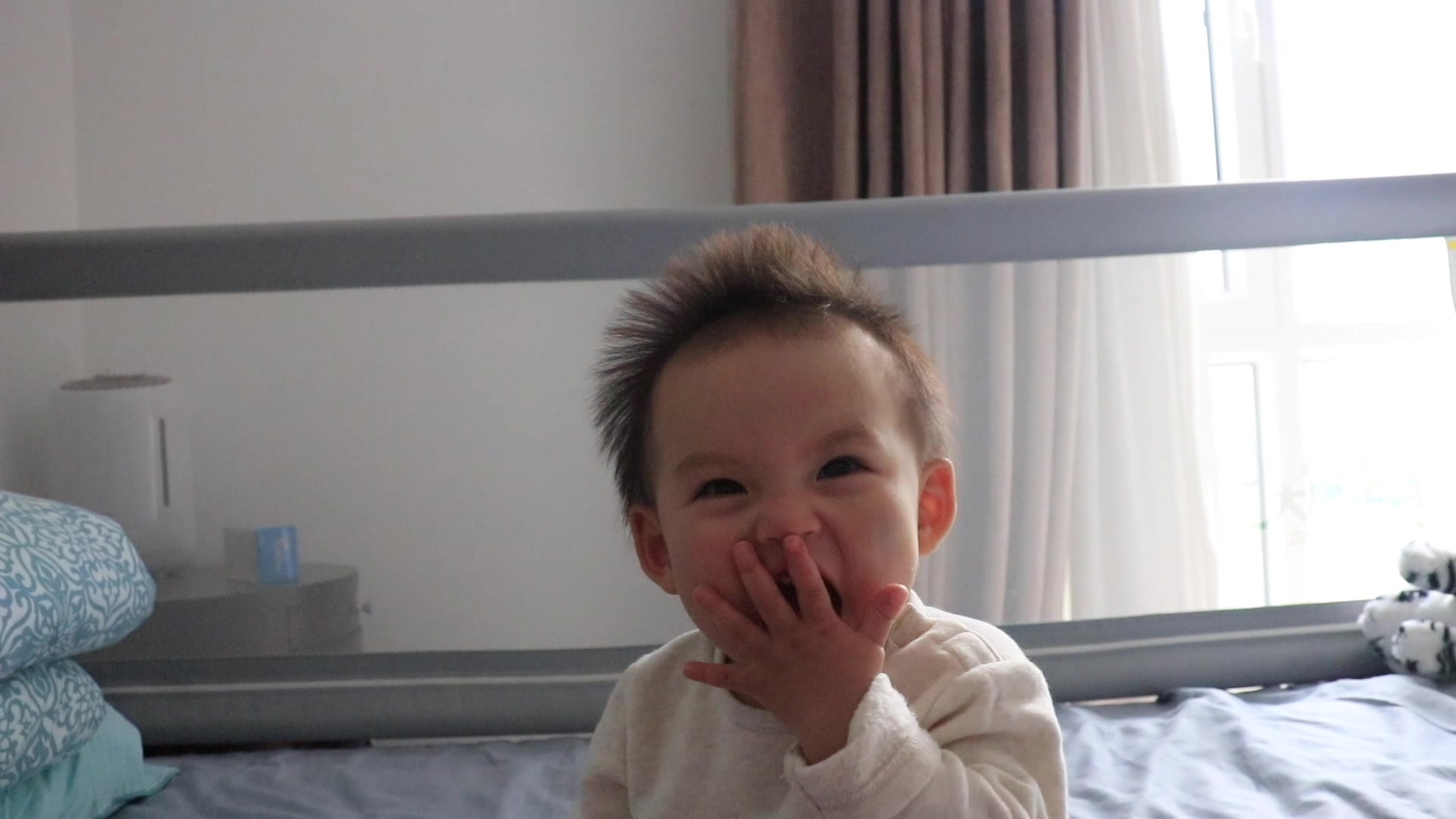 ลูกมนุษย์ตัวน้อยที่พยายามเรียกร้องความสนใจจากคุณแม่หลังตื่นนอน