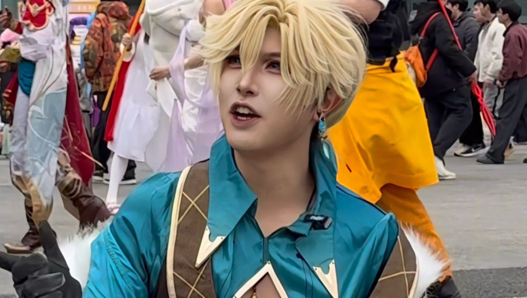 ภาพหายากของเด็กชายที่แต่งตัวเป็นผู้หญิงและสวมชุดคอสเพลย์ไหล่หยิงไปร่วมงานมหกรรมอนิเมะ