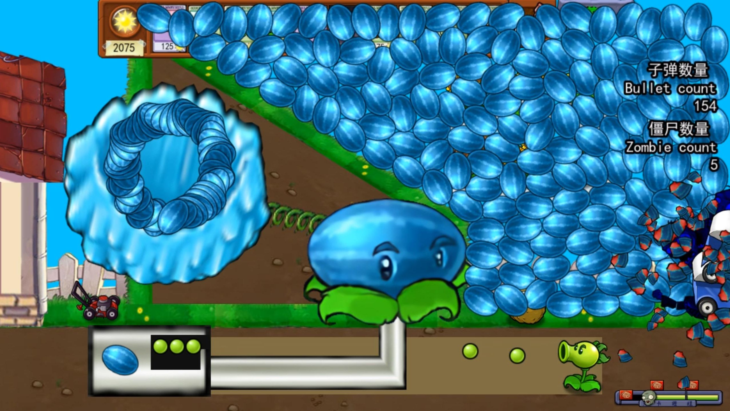 พืชชนิดไหนที่ปลูกซ้อนกัน 60 ต้นสามารถฆ่าฮิวแมนนอยด์ยามองค์รักษ์ลูกบอลแฮมสเตอร์พลังชีวิต 290,000 ได้?